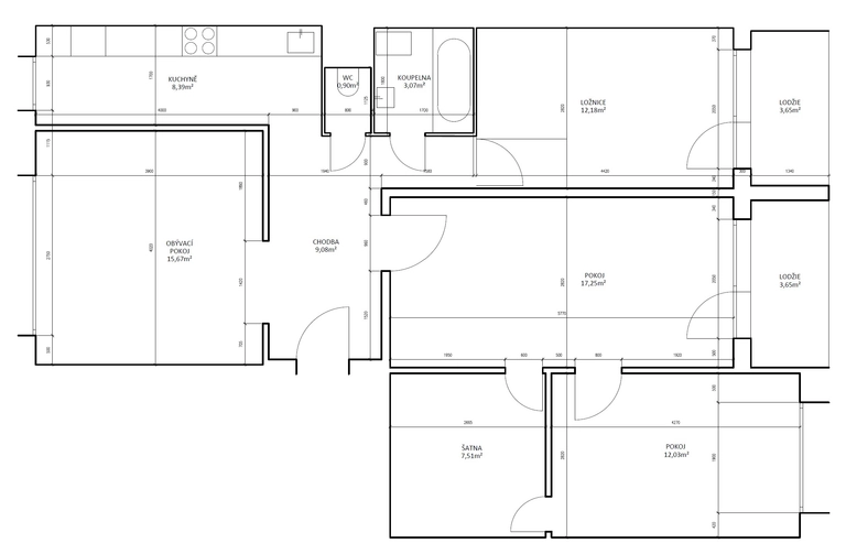 Zařízení bytu jsme spolu s klienty řešili do úrovně výroby vestavného nábytku. Další zabydlování bytu mobiliářem bude postupně probíhat v režii klientů.