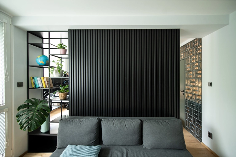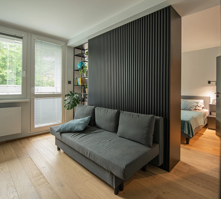 Zadáním byla kompletní rekonstrukce interiéru, který po patnácti letech od posledních úprav působil zastarale a již nevyhovoval funkčně ani esteticky představám klientů. Návrh byl řešen na míru pro klientku a jejího dospívajícího syna, kteří v bytě žijí. Při návrhu jsme řešili i změnu dispozice, ke které jsme využili druhé instalační jádro v bývalé komoře a vytvořili jsme zde druhou koupelnu. Byt se tak přirozeně rozdělil na dvě části, které poskytují obyvatelům lepší komfort a soukromí. Dispozice je přizpůsobená současným potřebám, zároveň ale počítá s budoucí variabilitou odpovídající dvougeneračnímu bydlení.