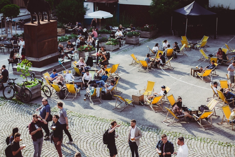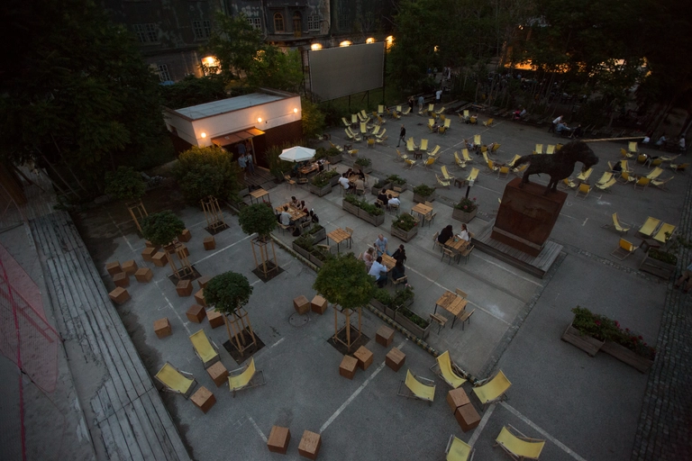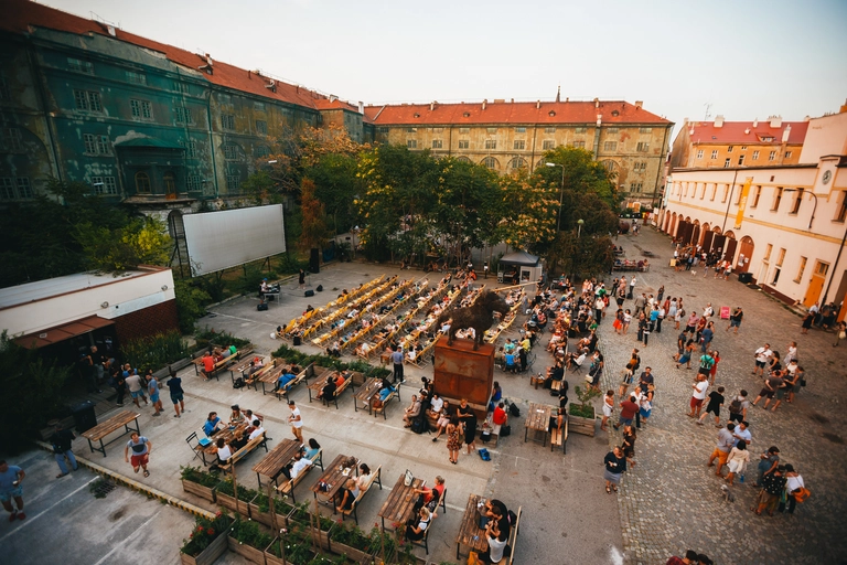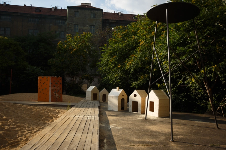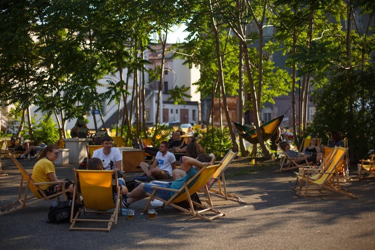 Na kasárenském nádvoří, které dříve tvořily převážně zpevněné plochy s náletovými dřevinami, vznikl dynamický prostor pro sport a kulturu. Měla jsem možnost podílet se na plánu revitalizace, který zahrnoval výsadbu nové zeleně a návrh drobné architektury — rekonstrukce venkovního baru, návrhu mobiliáře, dřevěných pódií nebo herních prvků dětského hřiště.
