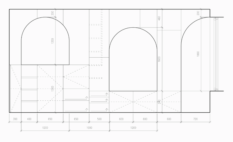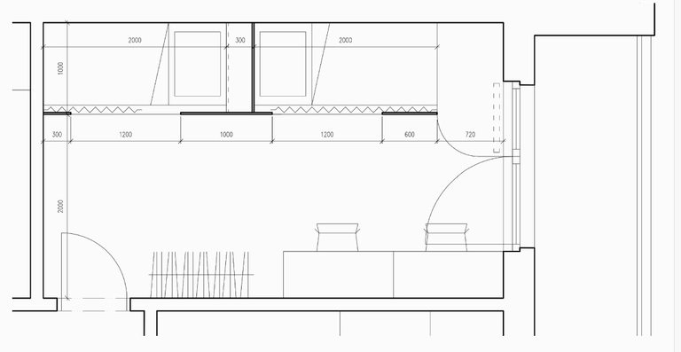 Zadáním byl návrh interiéru pokoje pro dvě dospívající dívky, který by splňoval všechny požadavky a zároveň poskytoval každé alespoň trochu soukromí. Navržená nábytková stěna řeší umístění dvou postelí do samostatných prostor, které lze uzavřít pomocí závěsů. S ohledem na nízkou světlou výšku místnosti - 2,6m - jsou postele umístěny vedle sebe. U hlavy každé postele jsou navrženy police na odkládání, zásuvky, vypínač na hlavní světlo a lampička.